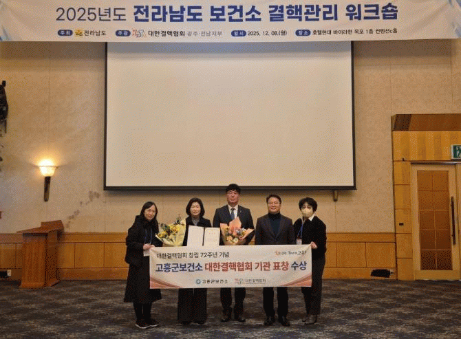 [¹Ìµð¾îÀü³² Á¦°¥´ëÁ¾ ±âÀÚ]°íÈﱺ º¸°Ç¼Ò´Â 8ÀÏ 2025³â °áÇÙ ¿¹¹æ¡¤°ü¸® ºÐ¾ß¿¡¼ Ź¿ùÇÑ ¼º°ú¸¦ ÀÎÁ¤¹Þ¾Æ ´ëÇѰáÇÙÇùȸ·ÎºÎÅÍ ±â°ü»óÀ» ¼ö»óÇß´Ù°í ¹àÇû´Ù. À̹ø ¼ö»óÀº ¼±Á¦Àû °ËÁø°ú Àû±ØÀûÀÎ °áÇÙ È®»ê ¹æÁö ³ë·ÂÀ» ÅëÇØ ¡®Ã»Á¤ °í¡¦