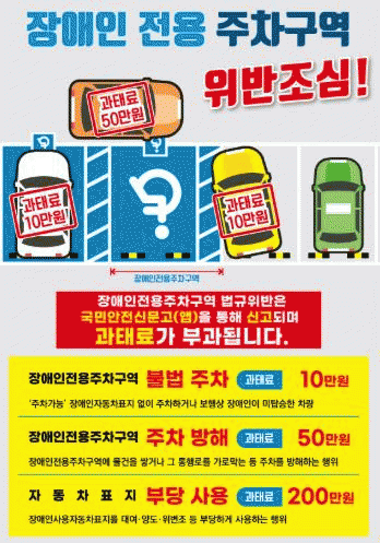 [¹Ìµð¾îÀü³² Á¦°¥´ëÁ¾ ±âÀÚ] ¿µ±¤±ºÀº Àå¾ÖÀÎÀü¿ëÁÖÂ÷±¸¿ªÀÌ º¸ÇàÀå¾ÖÀÎÀÇ À̵¿±Ç º¸ÀåÀ» À§ÇØ ¼³Ä¡µÈ ¹ýÁ¤ º¸È£±¸¿ªÀÓÀ» °Á¶Çϸç, ÁÖÂ÷À§¹Ý »ç·Ê¿¡ ´ëÇØ °¢º°È÷ ÁÖÀÇÇÒ °ÍÀ» ±Ç°íÇß´Ù. Àå¾ÖÀÎÀü¿ëÁÖÂ÷±¸¿ªÀº ½Ã°£°ú Àå¼Ò¿¡ °ü°è¾øÀÌ ¡¦