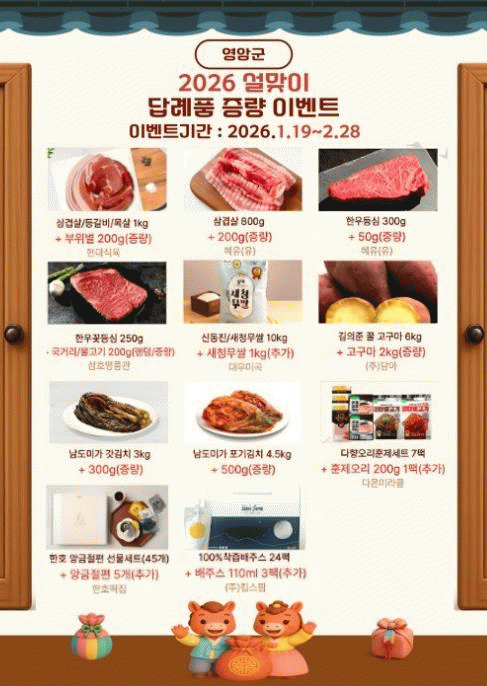 [¹Ìµð¾îÀü³² °í±Ô¼® ±âÀÚ]¿µ¾Ï±ºÀÌ 2/18ÀϱîÁö °íÇâ»ç¶û±âºÎ ´ä·Êǰ Áõ·® À̺¥Æ® ¡®¼³¿£ °íÇâ»ç¶û, ¿µ¾ÏÀº ´ýÀ¸·Î¡¯¸¦ ½ÃÇàÇÑ´Ù. ¡®Áö¿ª »ó»ý ±âºÎ¡¯¸¦ ±¸È£·Î ³»°Ç À̹ø À̺¥Æ®´Â, ¼³ ¸íÀýÀ» ¸Â¾Æ °íÇâ»ç¶û±âºÎ È®´ë, Áö¿ª ³óƯ»êǰ ÆÇ¡¦