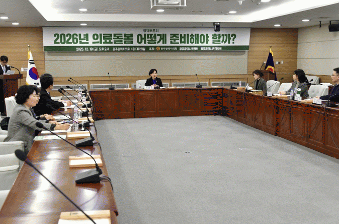 [¹Ìµð¾îÀü³² Á¦°¥´ëÁ¾ ±âÀÚ]±¤ÁÖ±¤¿ª½ÃÀÇȸ ¹Ú¹ÌÁ¤ ÀÇ¿ø(´õºÒ¾î¹ÎÁִ硤µ¿±¸2)Àº 19ÀÏ, ±¤ÁÖ½ÃÀÇȸ¿¡¼ '2026³â ÀÇ·áµ¹º½, ¾î¶»°Ô ÁغñÇØ¾ß ÇÒ±î?'Á¤Ã¥ Åä·Ðȸ¸¦ °³ÃÖÇß´Ù. À̹ø Åä·Ðȸ´Â 2026³â ¡®µ¹º½ÅëÇÕÁö¿ø¹ý¡¯ ½ÃÇàÀ» ¾ÕµÎ°í, Áö¿ª¡¦