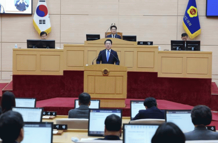 [¹Ìµð¾îÀü³² Á¦°¥´ëÁ¾ ±âÀÚ]°±âÁ¤ ±¤ÁÖ±¤¿ª½ÃÀåÀº Àü³²±¤ÁÖÆ¯º°½Ã Ãâ¹ü¿¡ ¾Õ¼ 4ÀÏ ±¤ÁÖ±¤¿ª½ÃÀÇȸ¿Í Àü¶ó³²µµÀÇȸ°¡ ¡®ÇàÁ¤ÅëÇÕ¿¡ ´ëÇÑ ÀǰßÁ¦½Ã¡¯¸¦ µ¿ÀÇÇÑ °Í°ú °ü·Ã, ¡°½ÃµµÀÇȸÀÇ °á´Ü¿¡ ±íÀÌ °¨»çµå¸°´Ù¡±°í ¹àÇû´Ù. °±âÁ¤ ½ÃÀ塦