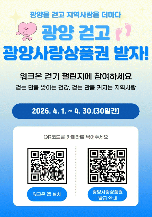 [¹Ìµð¾îÀü³² ÀÓ¼º¿Ï ±âÀÚ] ±¤¾ç½Ã°¡ ¿À´Â 4¿ùºÎÅÍ ½Ã¹Î °Ç° ÁõÁø°ú Áö¿ª°æÁ¦ Ȱ¼ºÈ¸¦ À§ÇØ ¸ð¹ÙÀÏ °È±â ¾Û ¡®¿öÅ©¿Â¡¯ °È±â 縰Áö º¸»óÀ» ±âÁ¸ ¸ð¹ÙÀÏ »óǰ±Ç¿¡¼ ±¤¾ç»ç¶û»óǰ±ÇÀ¸·Î º¯°æÇØ Áö±ÞÇÑ´Ù°í ¹àÇû´Ù. À̹ø º¸»ó °³ÆíÀº ½Ã¡¦