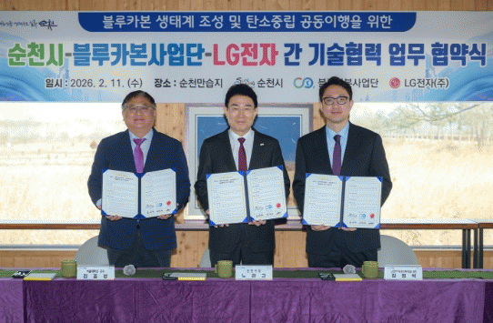 [¹Ìµð¾îÀü³² ÀÓ¼º¿Ï ±âÀÚ]¼øÃµ½Ã´Â 11ÀÏ ¼øÃµ¸¸½ÀÁö¿¡¼ ¼¿ï´ë ºí·çÄ«º»»ç¾÷´Ü, LGÀüÀÚ(ÁÖ)¿Í ÇÔ²² 'ºí·çÄ«º» »ýŰè Á¶¼º ¹× ź¼ÒÁ߸³ °øµ¿ ÀÌÇàÀ» À§ÇÑ ¾÷¹«Çù¾à'À» ü°áÇß´Ù°í ¹àÇû´Ù. À̹ø Çù¾àÀº ¼øÃµ½Ã°¡ º¸À¯ÇÑ ¼¼°èÀû ¼öÁØÀÇ ÇØ¡¦