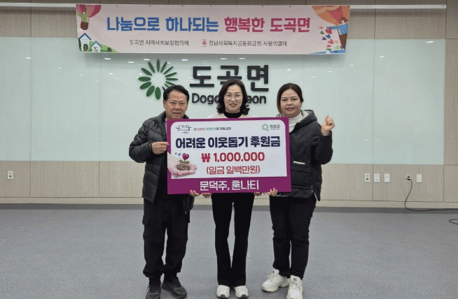 [¹Ìµð¾îÀü³² Á¦°¥´ëÁ¾ ±âÀÚ]µµ°î¸éÀº Áö³ 14ÀÏ °ü³»¿¡ °ÅÁÖÇÏ´Â ¹®´öÁÖ¡¤È¥³ªÆ¼ ºÎºÎ°¡ Áö¿ª ³» ¾î·Á¿î ÀÌ¿ôÀ» À§ÇØ 100¸¸ ¿øÀ» µµ°î¸é Áö¿ª»çȸº¸ÀåÇùÀÇü¿¡ ±âºÎÇß´Ù°í ¹àÇû´Ù. ¹®´öÁÖ¡¤È¥³ªÆ¼ ºÎºÎ´Â ¸ðµÎ°¡ °æ±â ħü·Î ¾î·Á¿òÀ»¡¦