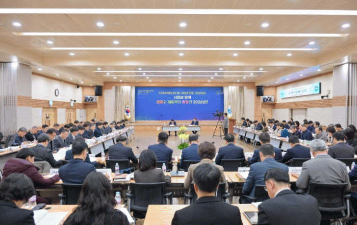 [¹Ìµð¾îÀü³² ÀüÇü¼º ±âÀÚ]¿©¼ö½Ã´Â Áö³ 15ÀÏ ½Ãû ȸÀǽǿ¡¼ Á¤±â¸í ¿©¼ö½ÃÀå ÁÖÀç·Î 5±Þ ÀÌ»ó °£ºÎ °ø¹«¿ø 70¿© ¸íÀÌ Âü¼®ÇÑ °¡¿îµ¥ ¡®2026³â ÁÖ¿ä ¾÷¹« º¸°íȸ¡¯¸¦ °³ÃÖÇß´Ù. À̹ø º¸°íȸ´Â ±¹¡¤¼Ò¡¤´Üº° ¿ÃÇØ ÃßÁøÇÒ ¿ªÁ¡ »ç¾÷µé¡¦